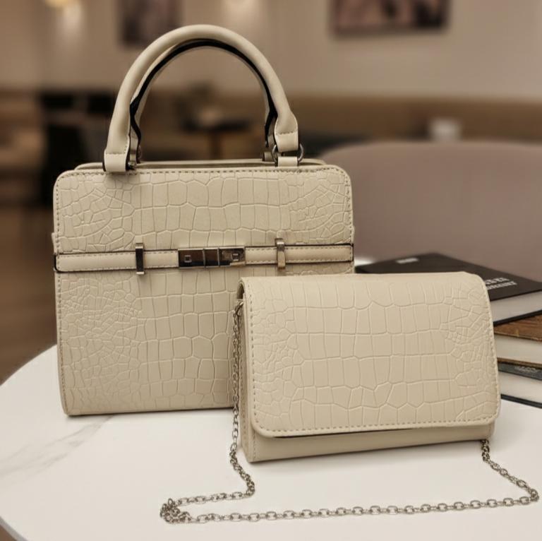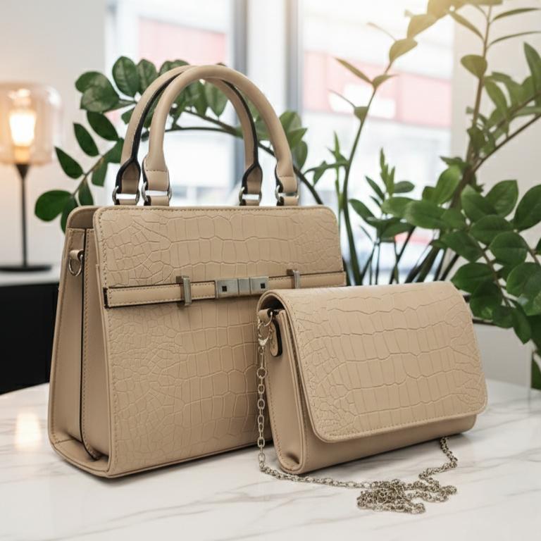 Konačno rešenje za sve prilike – komplet koji čini vašu svakodnevicu praktičnijom i elegantnijom. Velika torba je dovoljno prostrana za sve vaše dnevne potrebe, s pametno organizovanom unutrašnjošću. S jednim džepom i pregradom na rajsferšlus, sve je uredno i na dohvat ruke. Tu je i podesivi kaiš, tako da je možete nositi preko ramena ili u ruci. Za večernje izlaske, tu je mala, elegantna torbica koja će dodati sofisticirani dodir svakom stajlingu.