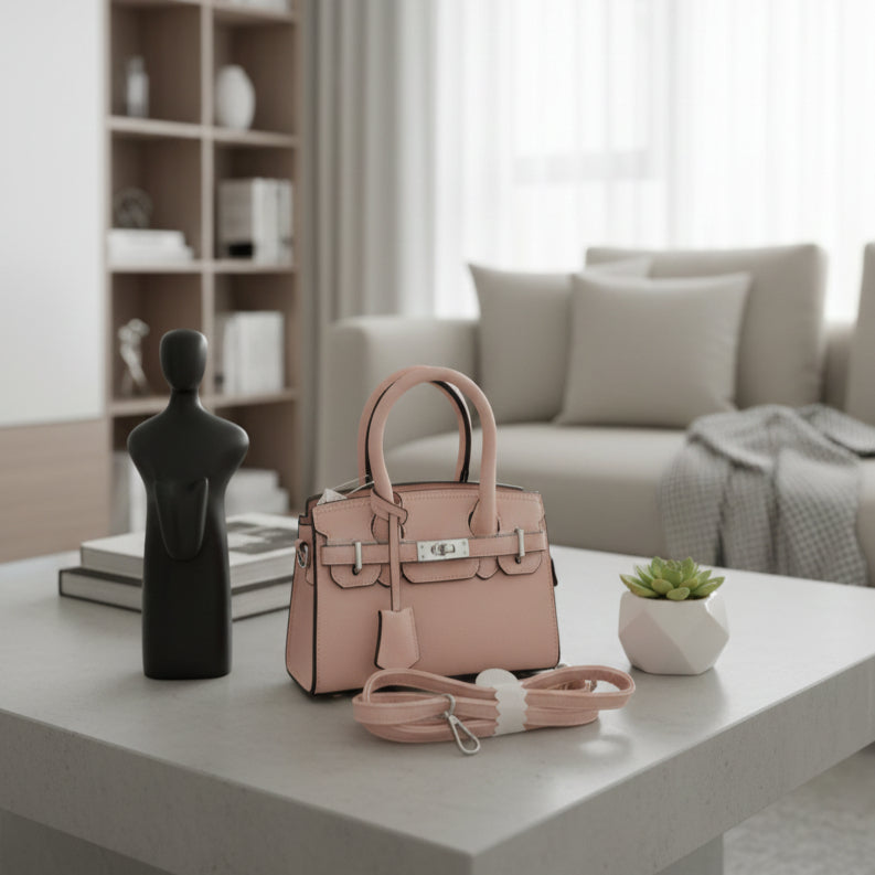 Petite dolazi u četiri neodoljive boje: klasičnoj crnoj, nežnoj bež, osvežavajućoj zelenoj i šarmantnoj pink. Svaka boja je pažljivo odabrana da dopuni vaš stil i unese dozu sofisticiranosti. Njen elegantan dizajn sa metalnim detaljima i odvojivim kaišem čini je izuzetno prilagodljivom. Nosite je u ruci ili preko ramena, kako god vam odgovara.